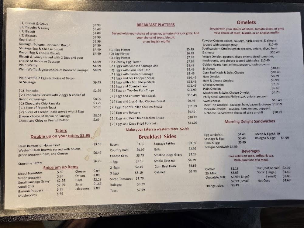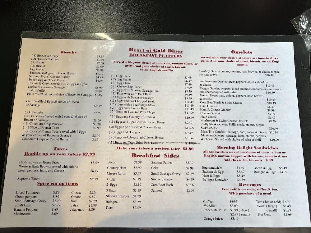 Heart Of Gold Diner presents an extensive menu that captures the essence of American diner fare. Offering breakfast items all day ensures patrons can satisfy cravings at any time. Menu highlights include fluffy pancakes, omelets, and classic comfort foods.